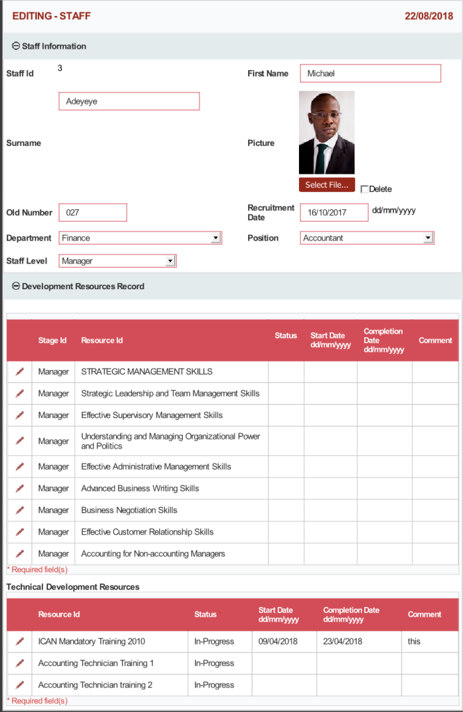 Sample Staff Management Development Profile